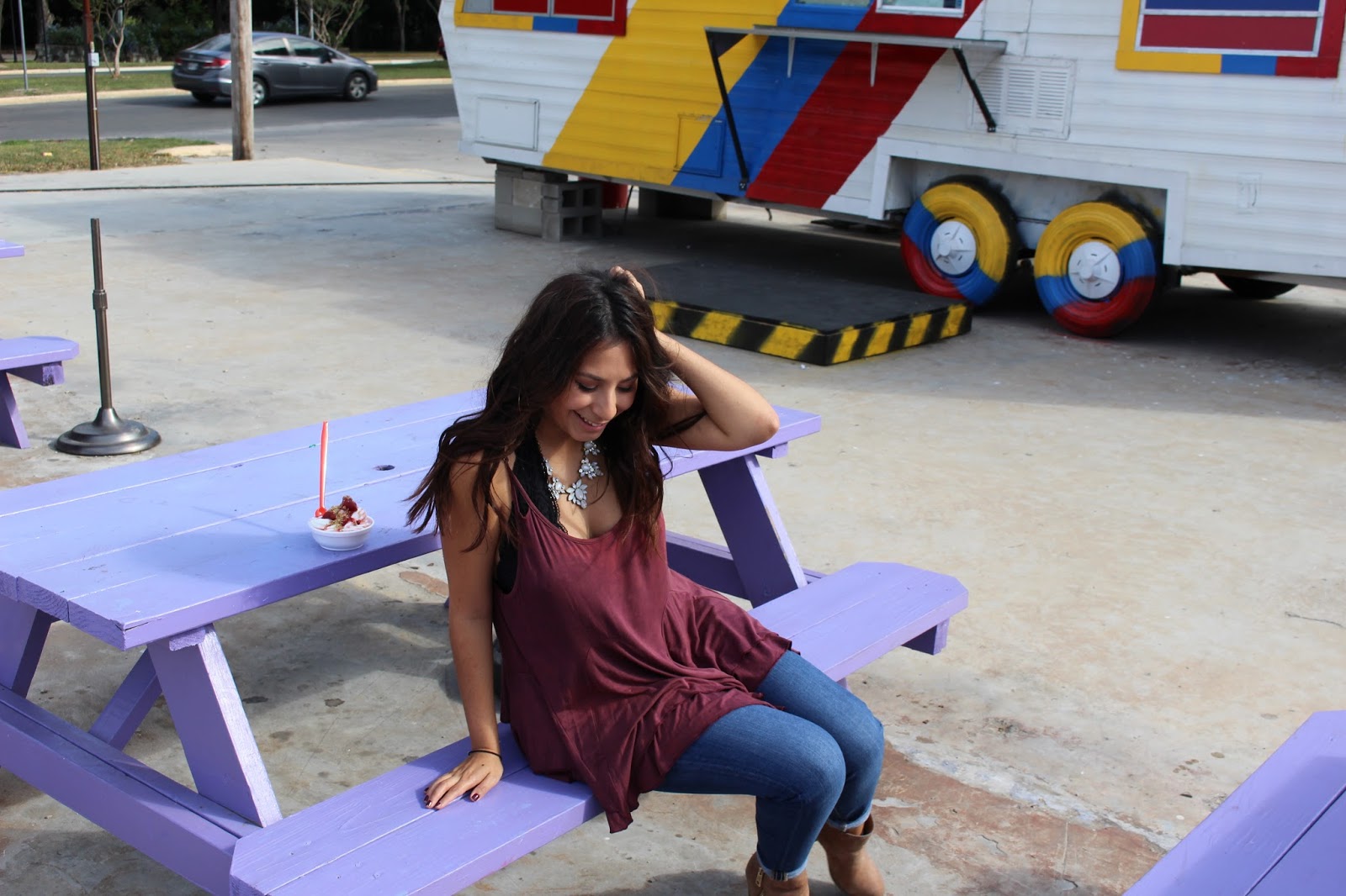 This was one of the new little places I tried this past weekend. It was a place that sold yogurt and snow cones. I loved it because it was in a food truck park. It was great and gave me the idea for this post and to try all of the places in San Marcos.