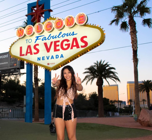 So back to my trip to Vegas… my boyfriend and I were total tourists and definitely had to go check out the famous Las Vegas sign! We literally rushed over there and it was getting dark so we had to take quick pictures before the sun went down. Since Nevada is a desert, in true desert fashion is gets super cold at night, so naturally I was freezing in my crop top and shorts.