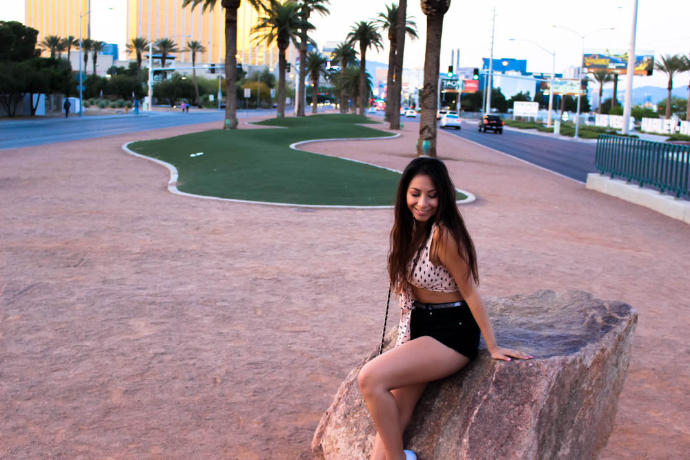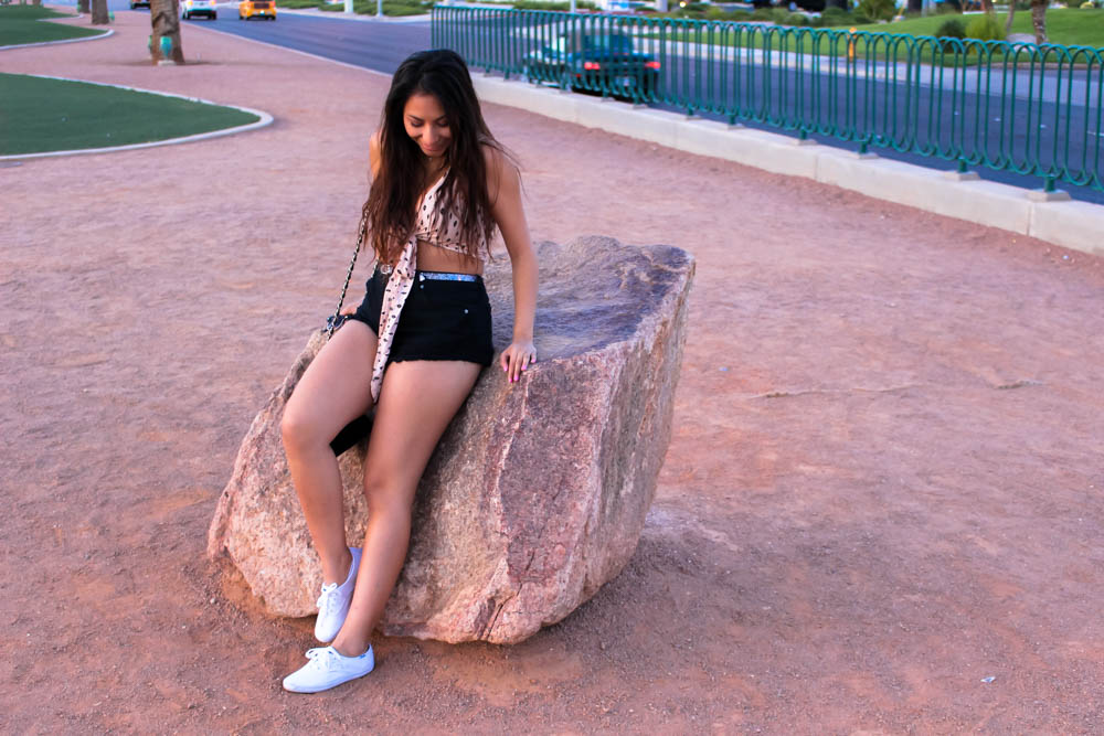 Let’s talk about my crop top and shorts for a sec. While I adore both pieces, I wish my shorts were a little more high waisted because I was a uncomfortable showing so much skin honestly. I convinced myself at least I am in Vegas so I will probably receive less judgment because there are naked people walking around everywhere! At least all my essentials are covered up! I hate that girls have to be so worried about what they wear. But at the same time I totally understand the other side. Keeping a balance between covered up and a little less coverage is super important. Ultimately being comfortable in whatever you wear as long as you are happy is what is more important to me.
