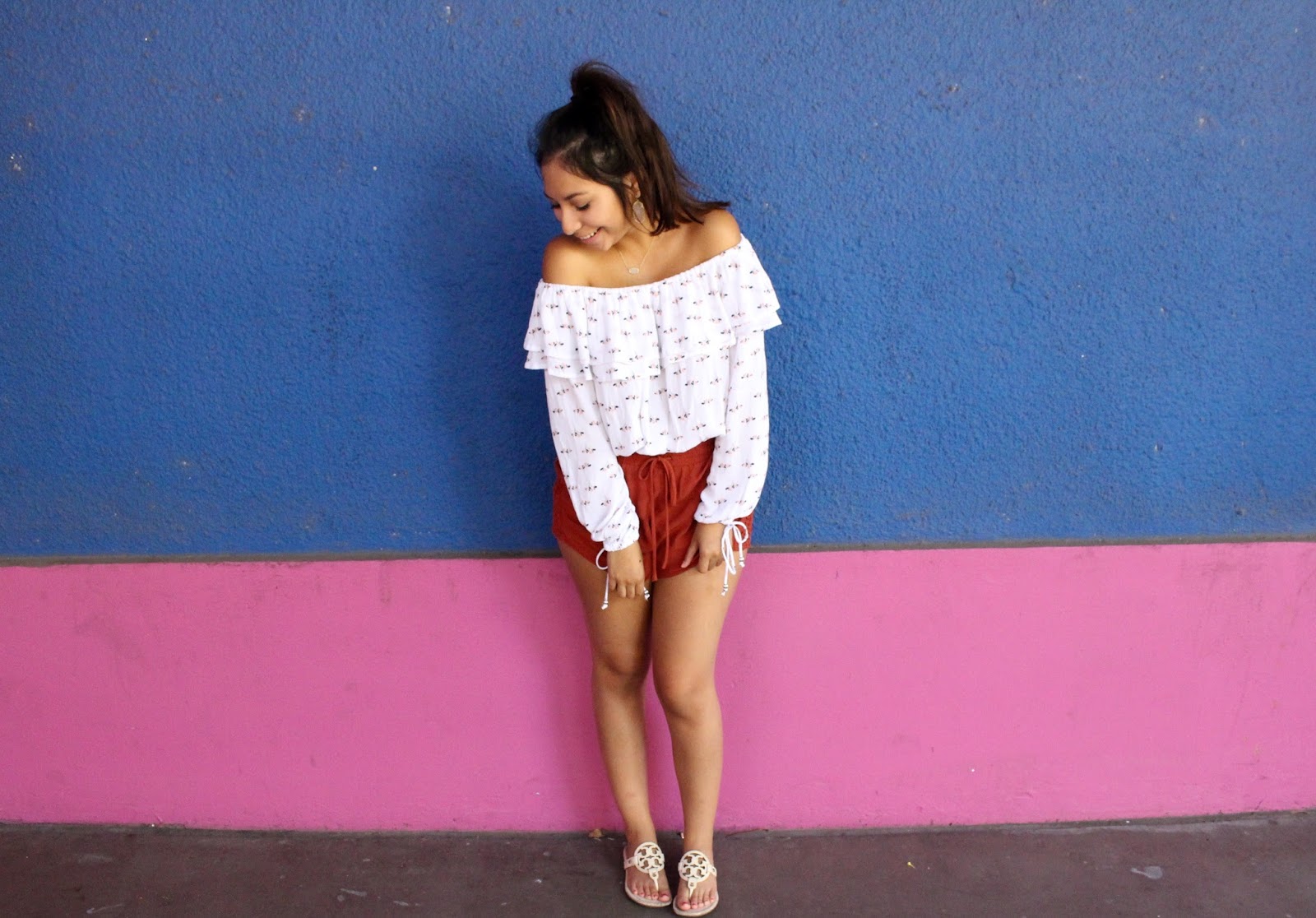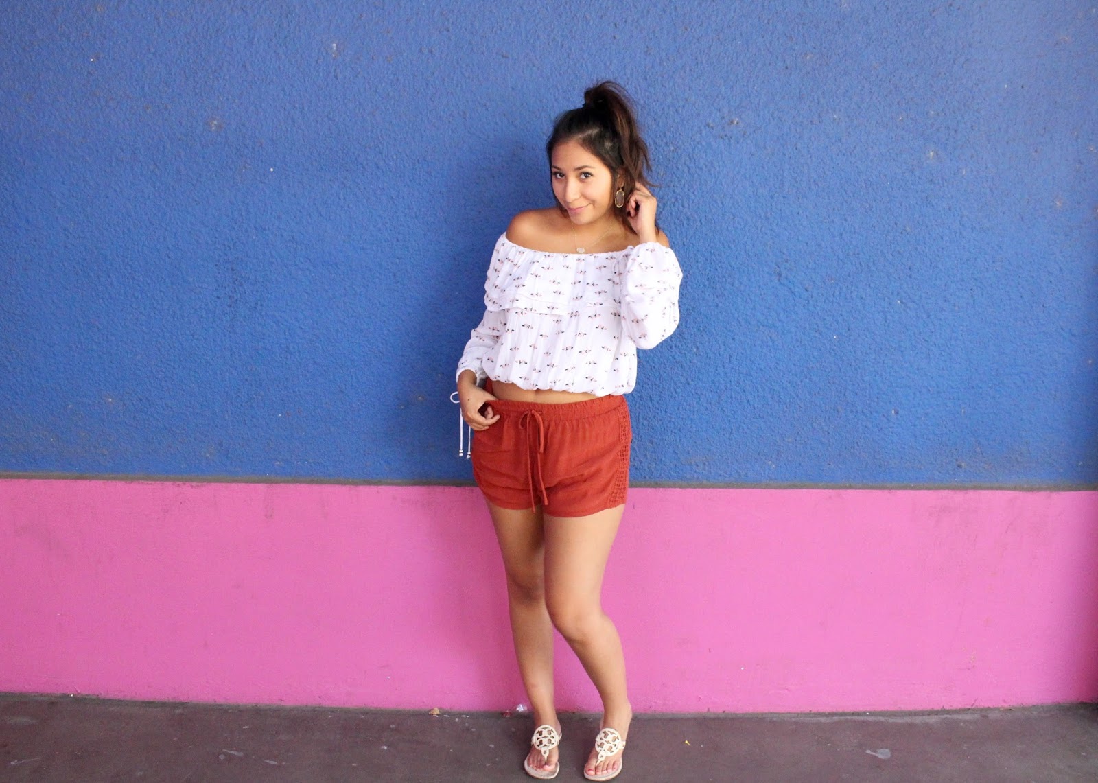 Blouse : Abercrombie // Shorts : Target // Sandals : Tory Burch // Jewelry : Kendra Scott (necklace & earrings)