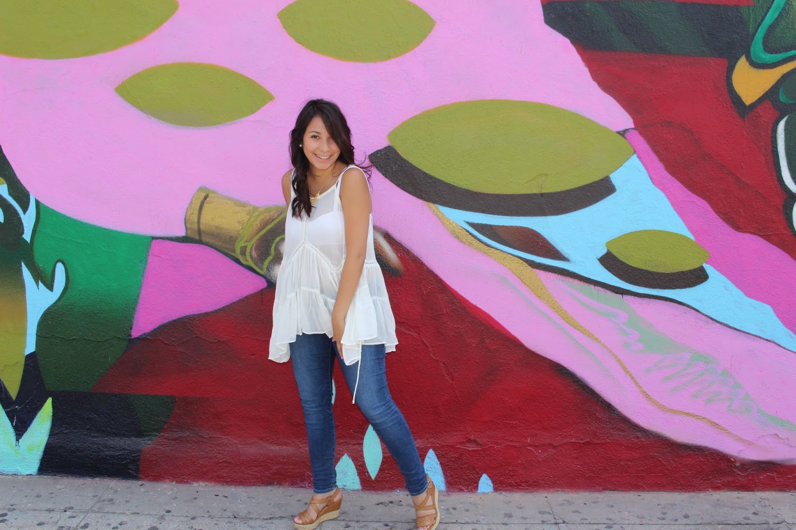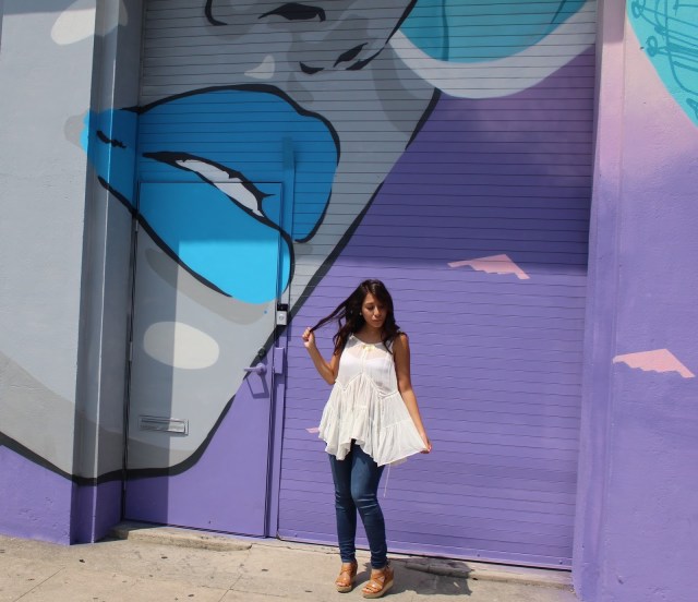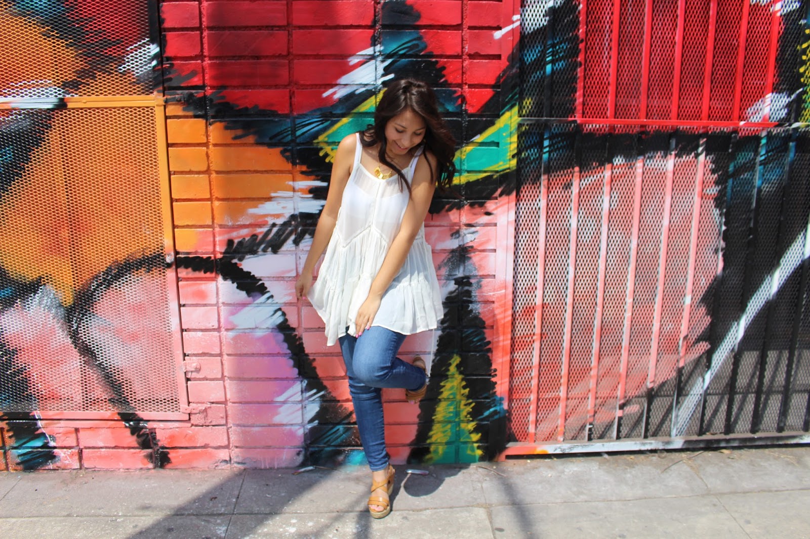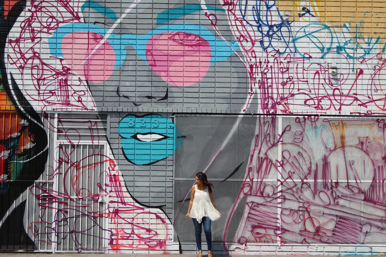 I visited the art district for this shoot in LA. At least I think it was the art district! I was looking for another colored wall and found all of this graffiti! But it is not like the regular graffiti you see in the streets! It is real art!