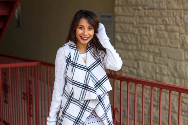 I was lucky enough to receive almost everything off of my wish list which included this vest! (See the items still up on my wish list tab) I adore the big plaid print and the black and white are just really great classic colors for the cooler season. I love how it folds over in the front and I knew it would be a great excuse to bring out my thigh highs.