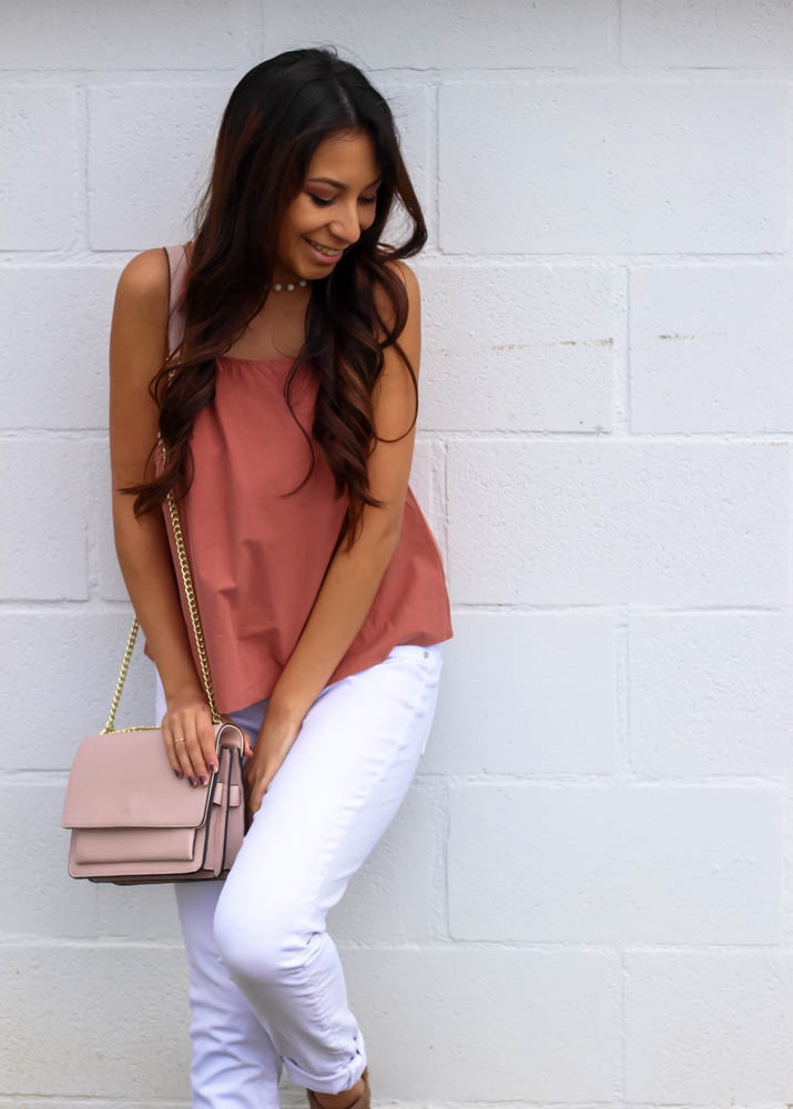 Top : Voge Boutique (similar) // Jeans : Nordstrom // Shoes : Nordstrom // Necklace : Shira Melody Jewelry // Bag : (similar)