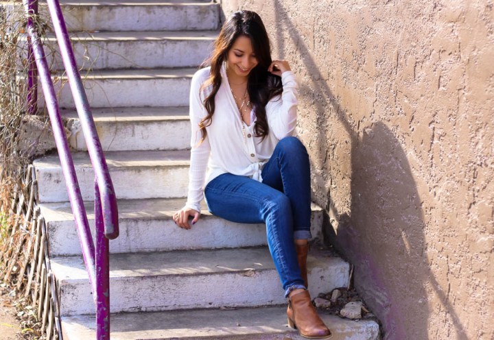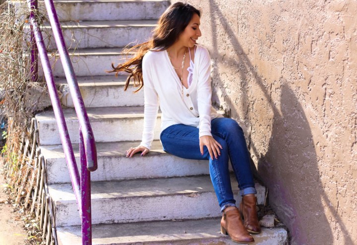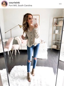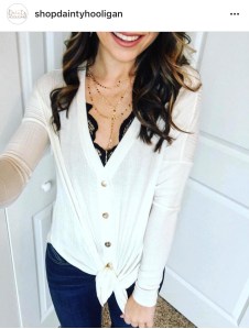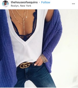 This necklace, bralette, and thermal were a big trend and when I realized I have all of the pieces I wanted to recreate the look. The picture by house of sequins is the most popular and I really wanted to add my Tory Burch belt, but my top would cover it up.