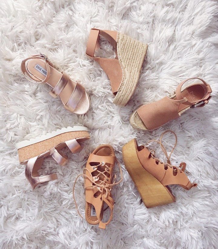 I wanted to do a quick round up of my favorite shoes of the moment – platforms. I love the height since I am super short and I also love the espadrilles feel! Whether it be cork or a regular chunky platform I love the trend right now. Not only are they cute but they are way more comfortable then a regular heel and even wedges! I included my favorite wedges of the moment as well, but I so love the feel of a cute vintage platform look.
