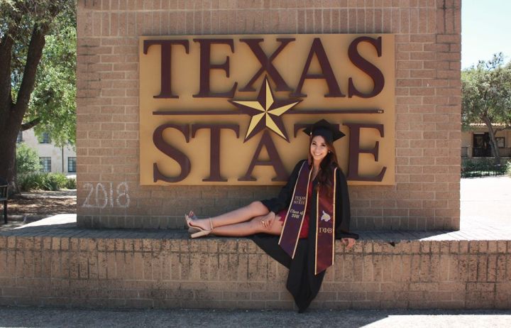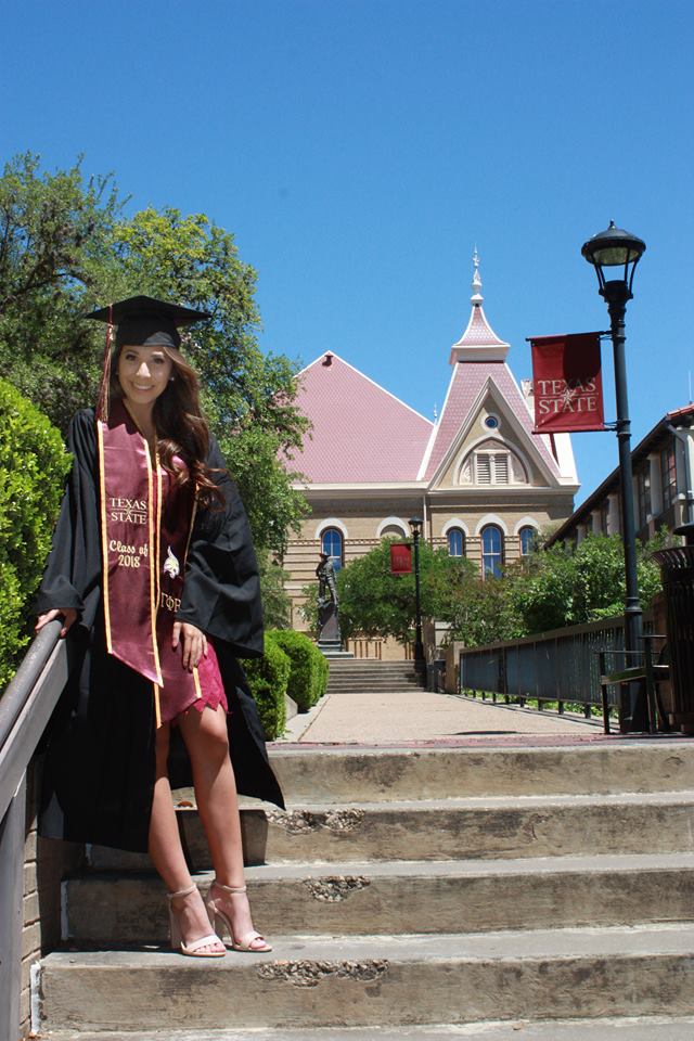 I cannot believe that four years have come and went so fast; these past few years have been amazing. There was something significant about every year from moving away from home freshman year, to joining Gamma Phi Beta, there were so many memories and friends made along the way. Each person that has been put in my path has made an impact in my life and has given me a memory I never want to forget. I loved being at Texas State University and there are things I learned here that I do not believe I would have learned at another school. Going from small private catholic schools to a large and diverse university was such an eye opener and much needed. The people here are so different and that is something that not everyone gets to experience. Being stuck in the same “bubble” with the same type of people is not what life is made of, and this part of my life really gave meaning to that. I am proud of who I have become and even more so who I have become friends with. I would love to go back and do it all again, start over and experience it all and not change anything. Some of these people I met have gotten me through some of the toughest points I have been through and also some of the absolute happiest! I am blessed to have experienced all that San Marcos has to offer and the town is not the same as when I got here four years ago, also it is exactly the same. I am so happy to graduate in the exact four years I was given but I am also so sad because I wish I was given more time here. But as I close this chapter in my life I am blessed to look back and realize that college really was so amazing and I cannot wait to see what is next for me. Thank you for the memories and experiences that have made me me.