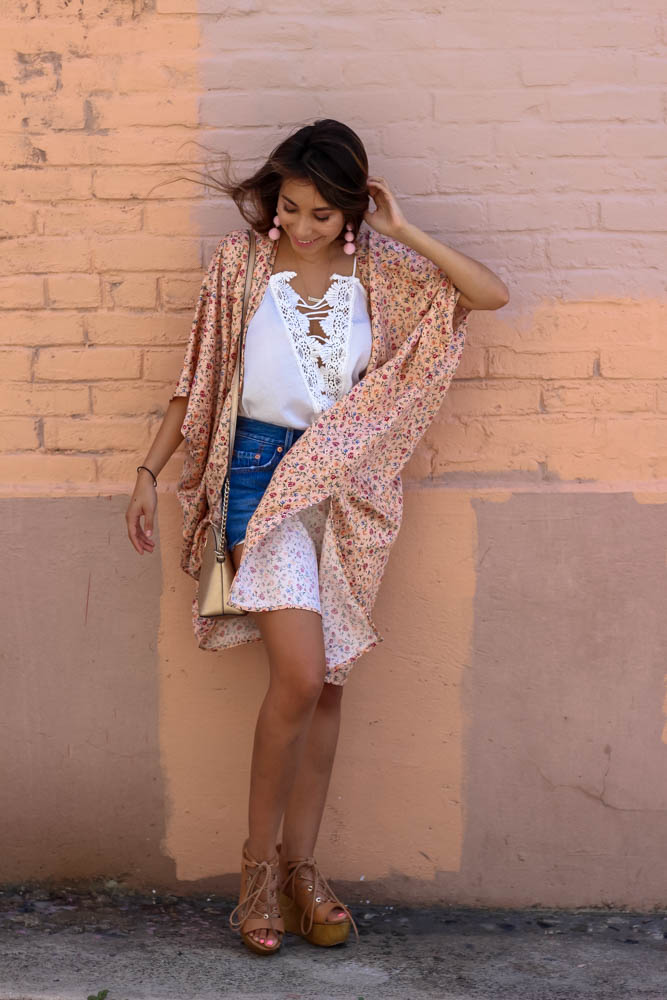 Kimono : Forever 21 // Shorts : Levi’s // Top : (similar) // Shoes : Steve Madden (similar)