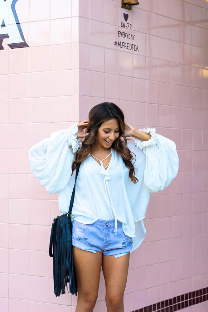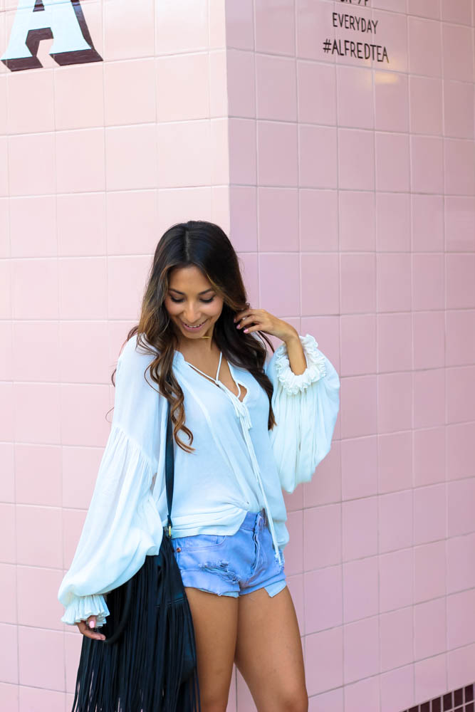 Top : Free People // Shorts : One x one teaspoon Bandits // Shoes : Steve Madden (similar) // Purse : Steve Madden
