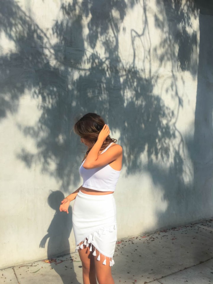 White Tassel Trim White Skirt // Steve Madden ‘Kirsten’ Sandals // Karielle Black Flatform Espadrilles // Gold Necklace : Forever 21