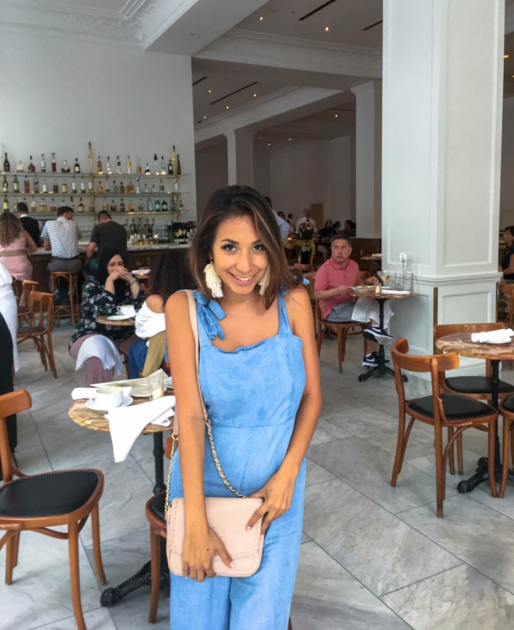 I wore mine all day going to meetings for school as well as sight seeing and I love the way it felt! The wider cut of the pant felt airy and cool and the cinching at the waist definitely gives me a good curve! Finding a jumpsuit for your body type is everything! So this is something you may want to shop around for a bit before you find your favorite!