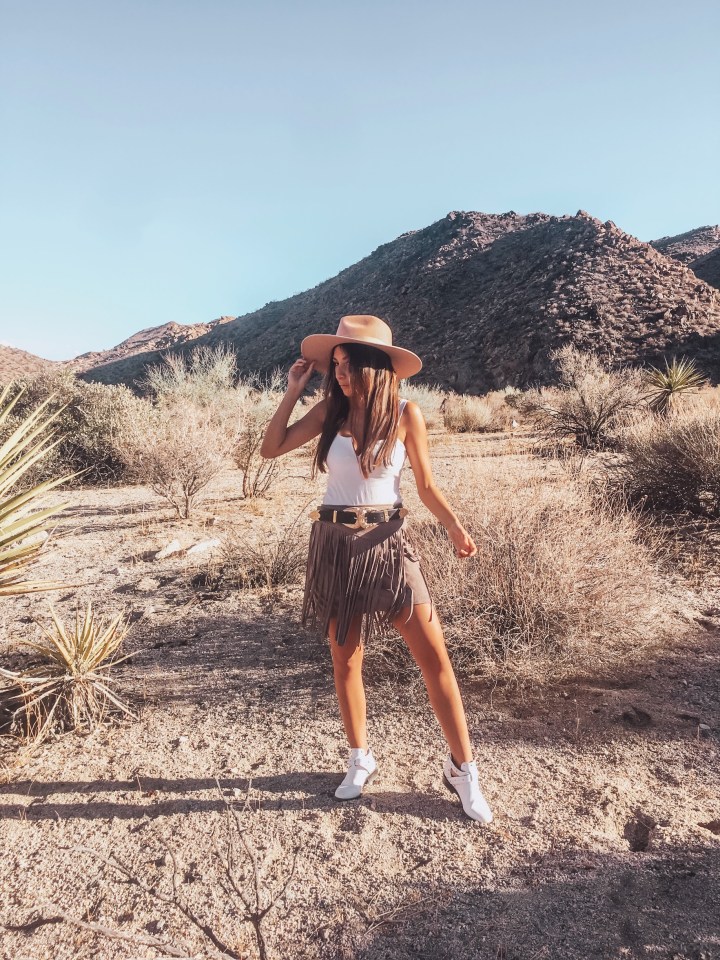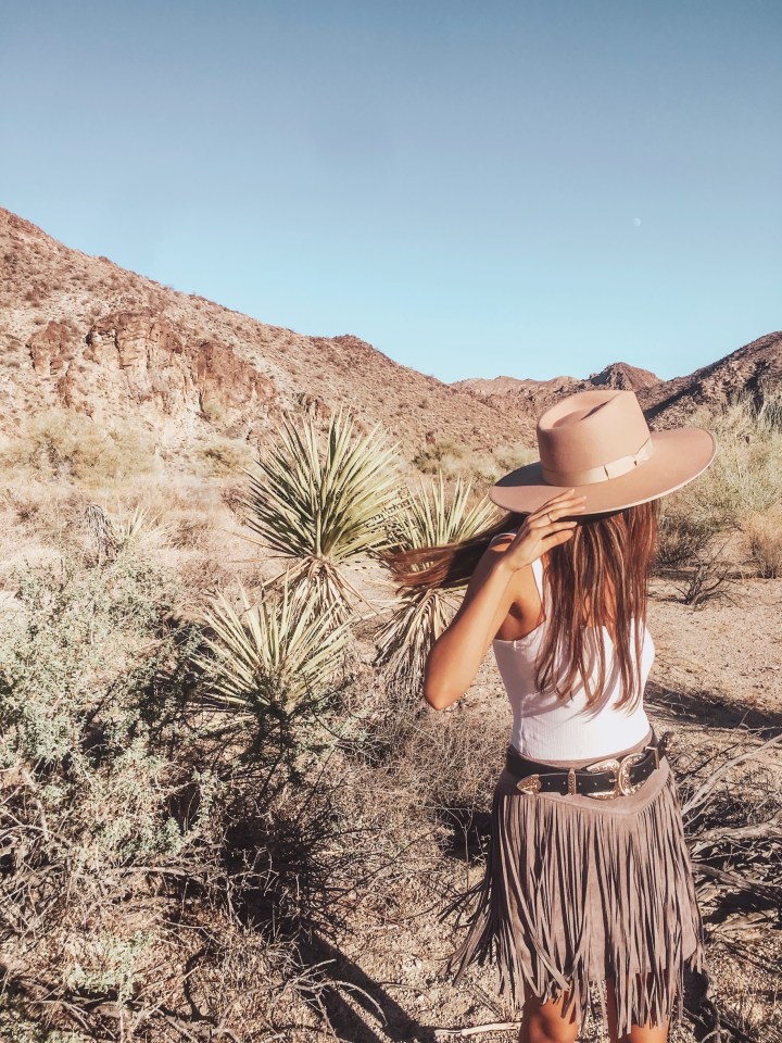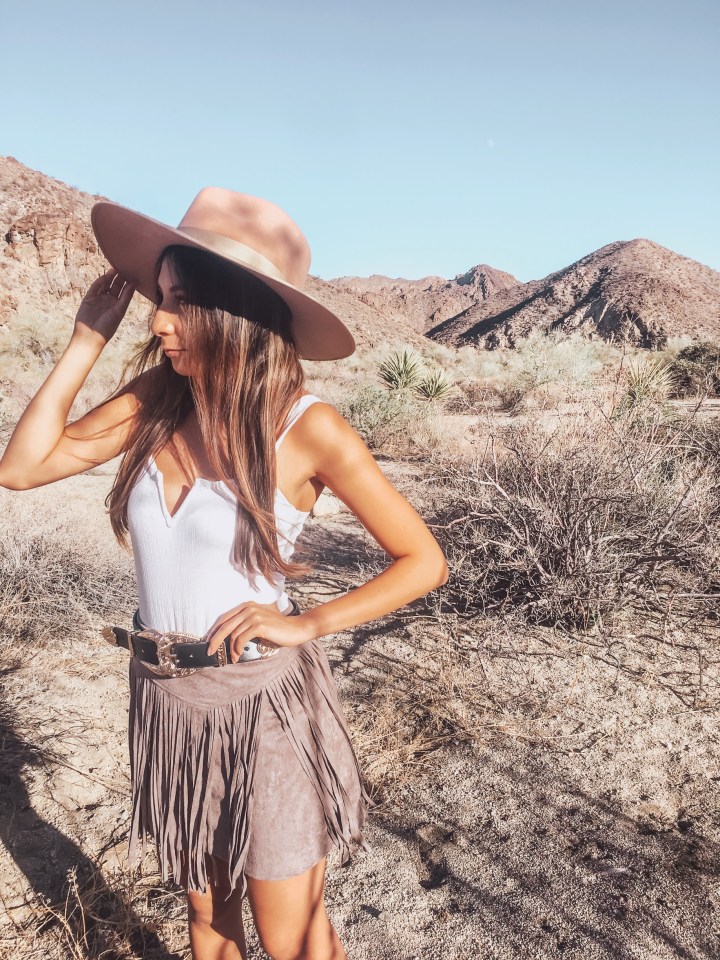 Top : Free People // Skirt : Show Me Your Mumu (similar) // Booties : Halogen // Hat : Show Me Your Mumu // Belt : Pretty Little Thing