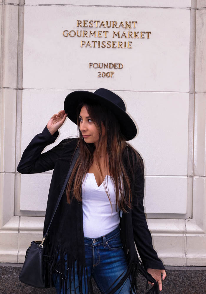 Let’s do a quick outfit recap, shall we? As I was driving to meet a few LA influencers I thought to myself… I like this outfit, but this hat really made it pop! It’s obvious I have been really into hats recently, but I think they can really take an outfit to the next level. This Free People bodysuit has been on REPEAT lately as you can probably tell! I have been wearing it in every other post and for good reason! It looks good with everything and is simple and easy to throw on since it’s so comfortable! When you find a piece that you love so much, it’s hard not to want to wear it all of the time! I definitely love Free People and their pieces are always one of a kind! A sneak peek into my Christmas list… some new flare jeans from Free People!