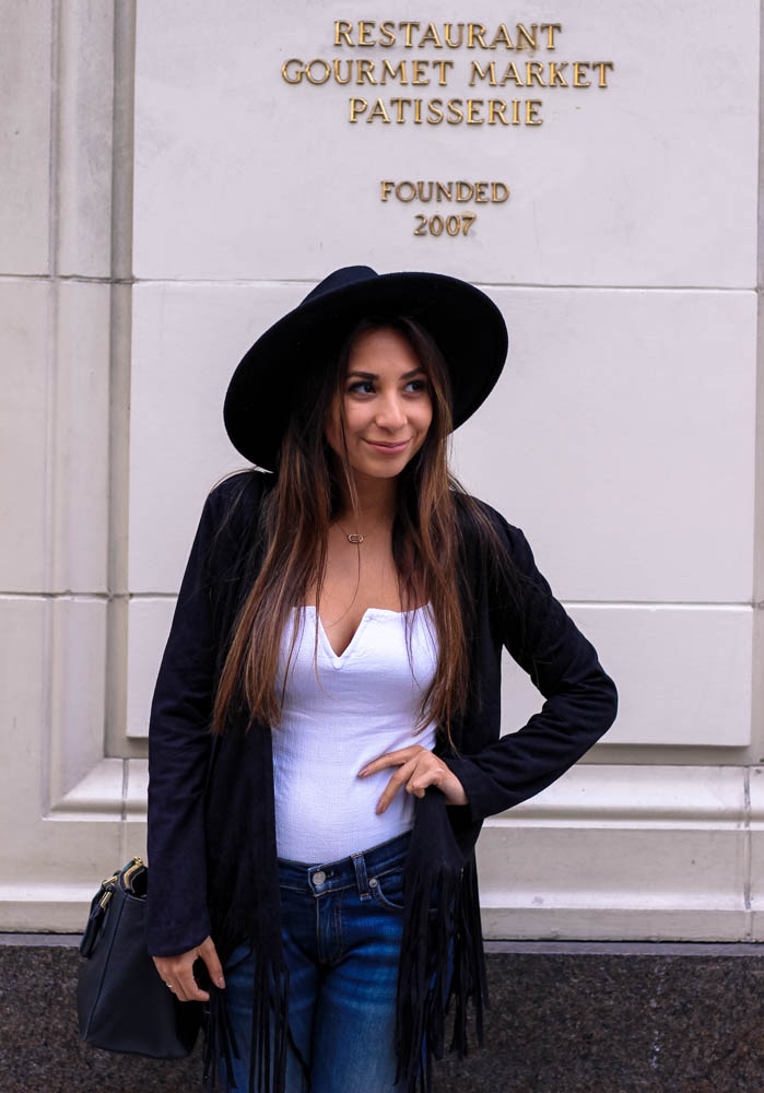 Body Suit : Free People // Jeans : Rag and Bone // Shoes : Target // Hat : Target // Jacket : Haute and Rebellious