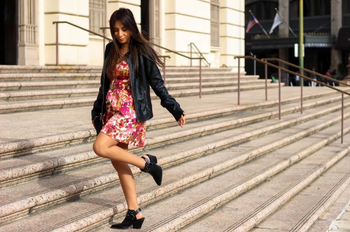 I’ve seen a mix of floral and leather at worn by at least three major bloggers and each time I thought, “That is so something I would wear!” So, of course, I had to try it for myself. I love the mix of the print with the neutral black staple and the contrast of the tough leather against a feminine floral! This is so me! I can never tell if I would rather post more about fun, bright, out there statement pieces or simple neutral plain looks.