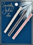 The first prom was a cream one-shoulder dress, the second was a strapless pink ombre dress, last was a light pink embellished dress