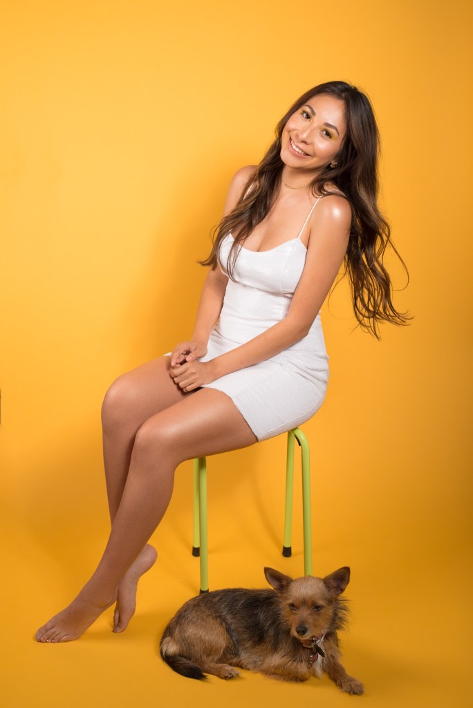 Let me start off by saying it’s easy to pose when you have an amazing photographer and makeup artist! I got together with a few friends from elementary and middle school and put together this amazing look! If you’re in the San Antonio area I will so give you details for the best photographer and makeup artist! I’m seriously glowing because of all of the makeup and highlight! Also, this was the first shoot I have ever done featuring my little fur baby! I was so excited and did not expect her to be apart of the shoot but she was scared and not comfortable because of all of the lights and unfamiliar faces that she just stuck by my side.