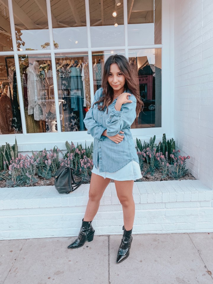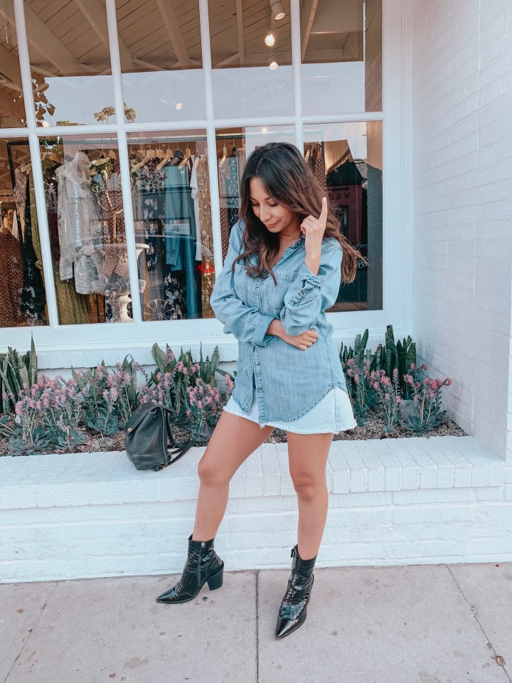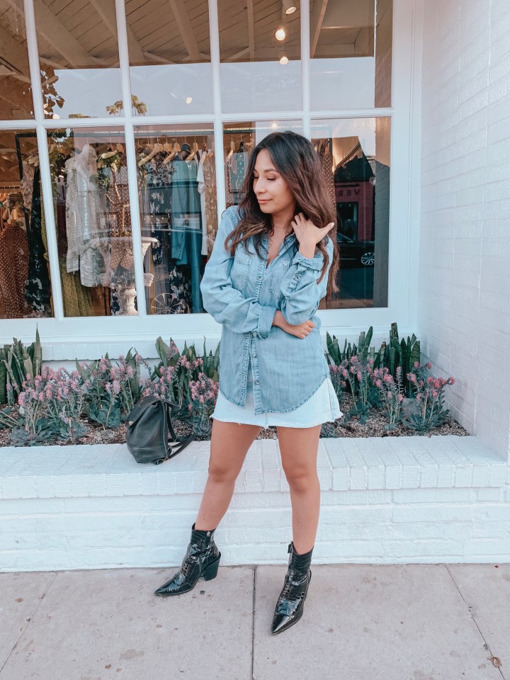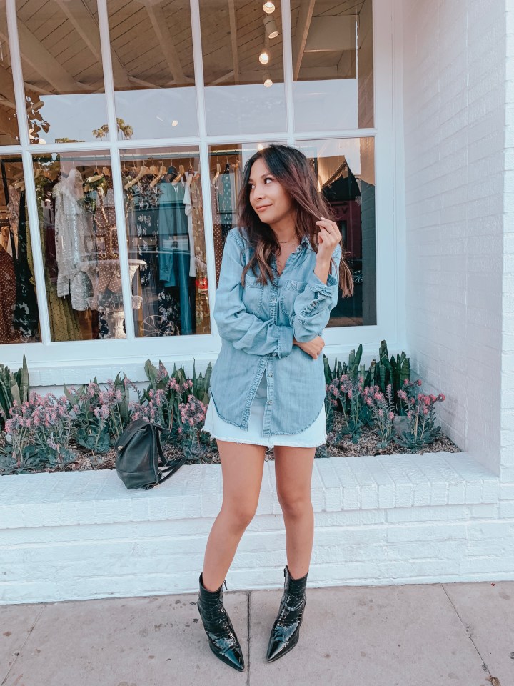 - I opted for lighter denim pieces so that I wouldn’t be overly hot, and the light and looser fitting denim pieces made me comfortable all day and night! I actually wore this outfit to work and to hang out with the girls after, so it was an all-day look I didn’t have to keep tugging at or pulling down