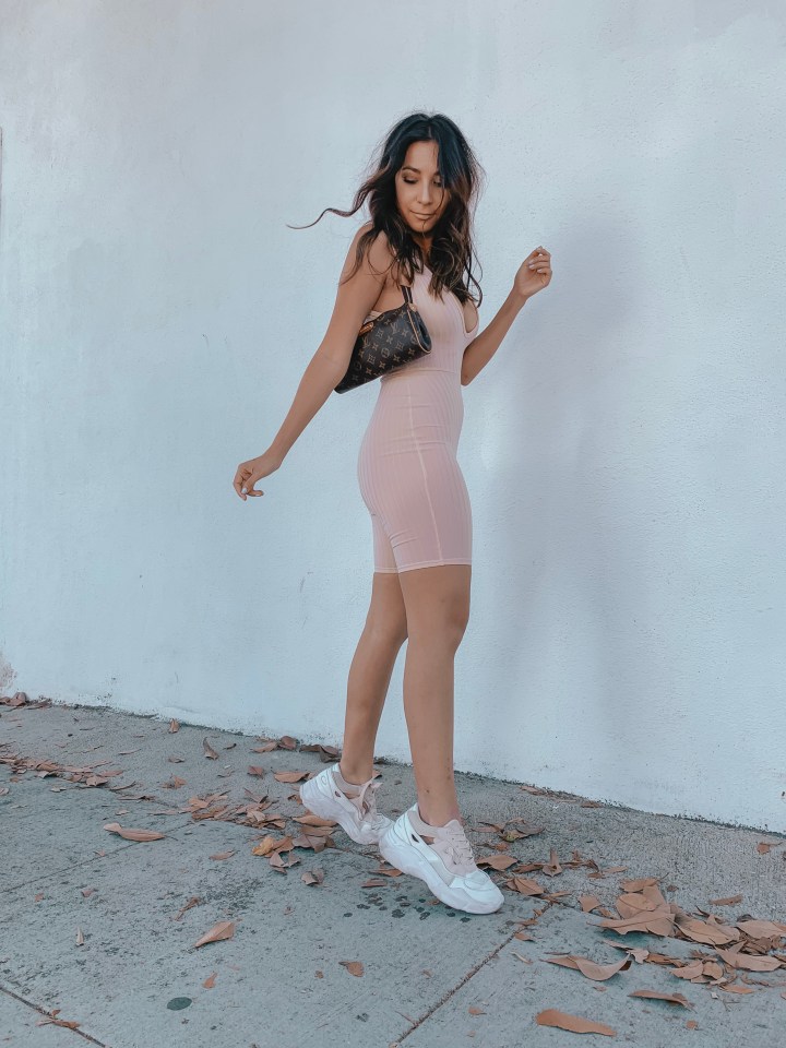So am I! It’s all about comfort and love that it is a trend now too. This one piece is amazing. Love the soft pink color and the sneakers.
