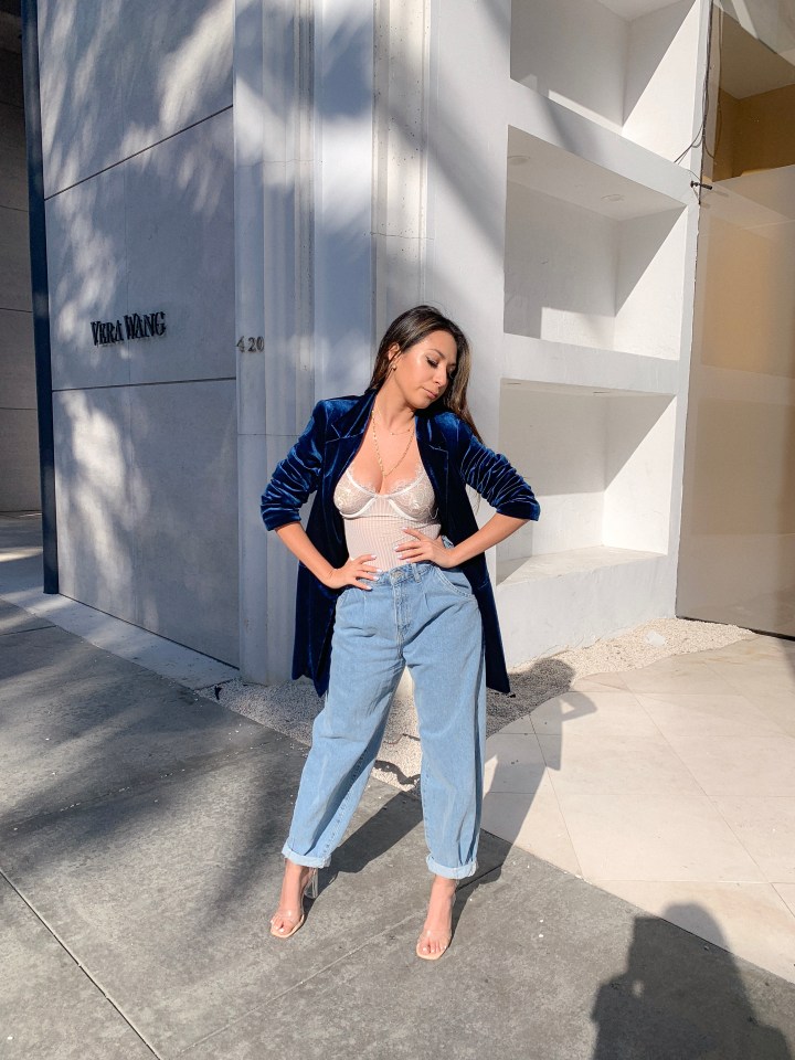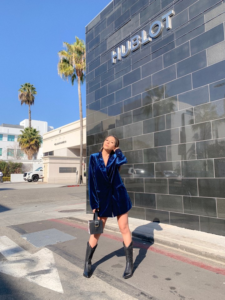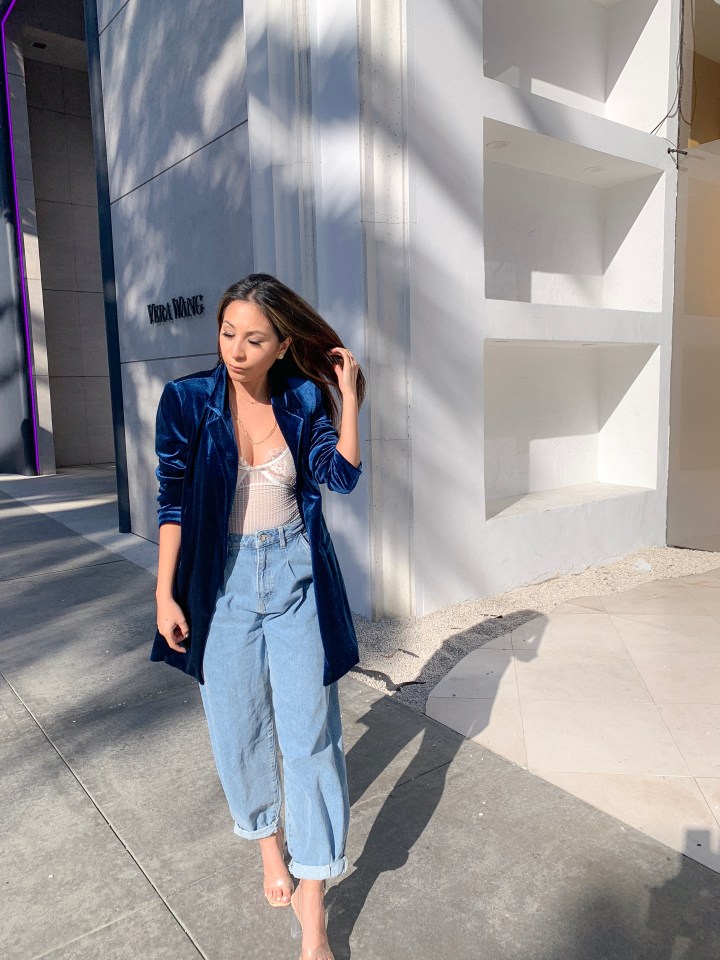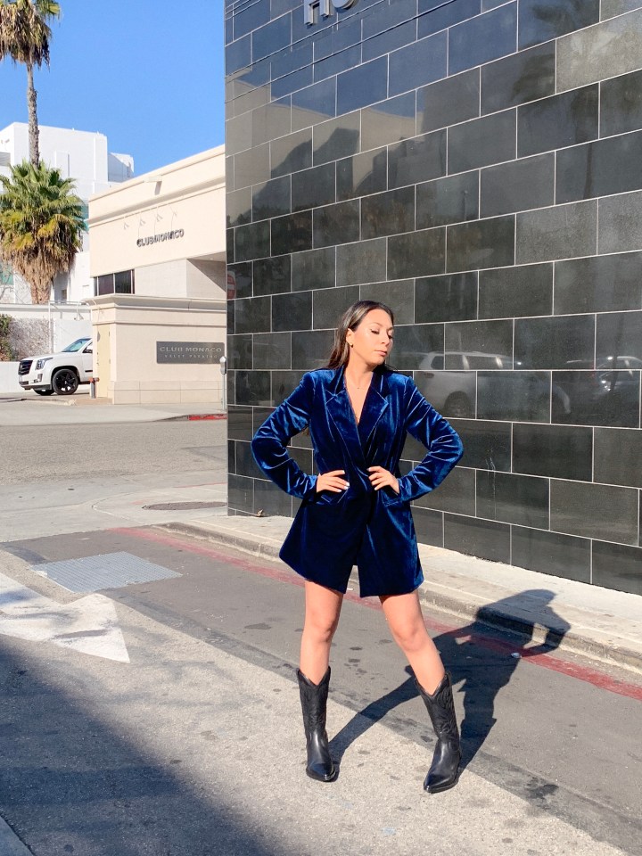 Because I love this piece so much, I just had to style it multiple ways! So check out these outfit inspo shots that I totally came up with by myself… with no help from any source… especially not Pinterest… because I definitely did not type in “Velvet Blazer Outfit”. But I will give myself credit for the boots combo because I think these boots will go with anything and I love the contrast of the pieces itself but they are not too flamboyant as they are both darker colors so they go well together.