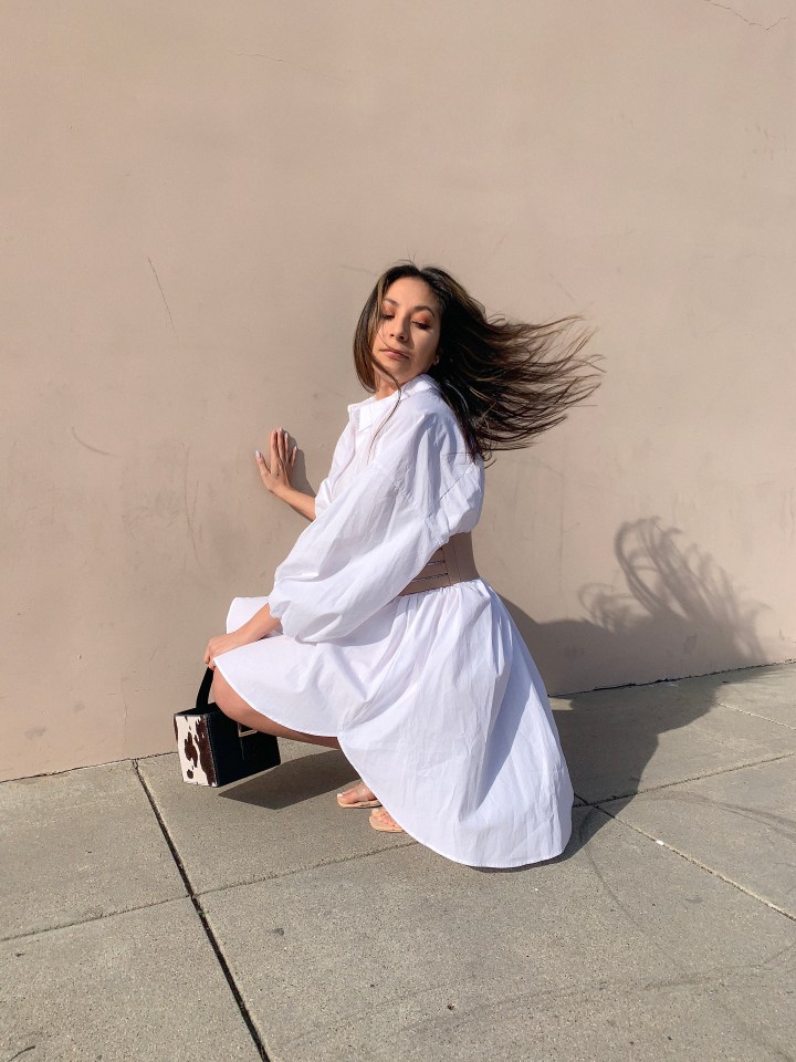 When I put on this outfit I thought it would be a little too old for me. Sometimes I have to remind myself that I am 24 years old and I think if I am too old for the teeny-bopper looks or if I am too young to be dressing like someone with an established career. I think I should be dressing as if I were in my thirties sometimes because you want to set yourself up for success… however, if I grow my abs you can definitely catch me in some hip huggers!