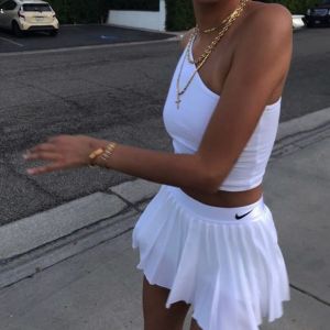 The sporty look has been getting major traction recently. It has shown up all over Instagram and the coolest piece for completing this trend has been the tennis skirt. I remember a few years ago wearing a tennis skirt was like flipping a coin, you either loved it or hated it. While that may still be the case, more girls are loving this cool look. The white fabric tends to be easier to style and can be paired with an oversized top or a crop making it more versatile. Even WhoWhatWear wrote an article on this popular trend.