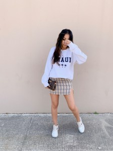 As for me, I honestly LOVE this trend but I do not want to buy a tennis skirt and then the trend fizzle out and I’m left with a sporty garment when I clearly do not play sports. So if you don’t have one and are like me, try a pleated mini skirt, a white mini skirt, or a printed mini skirt instead.