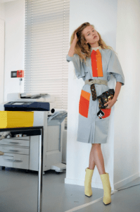 Shot in Paris, the images give the feel of a high-fashion pre-fitting with models in the back of the frames posing with their look and empty racks that have been shot in a studio, as quarantine has taken another fashion victim. “A cruise collection inspired by a stationary journey. A contradiction, but not a burden,” the collection notes said (quote from WWD)