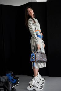 The preppy collection showcases 18 looks that include color-blocking and garments that can be worn with a classic black heel, sneakers, or a neat combat boot. Looser fitting looks can be seen complimented by sharp tailoring as well as playing card patterns such as spades, hearts, diamonds, and clubs which are almost camouflaged to blend in with the renowned LV print. The looks are clean-cut and certain aspects hint to me of the late 90’s early 2000’s professional attire looks.