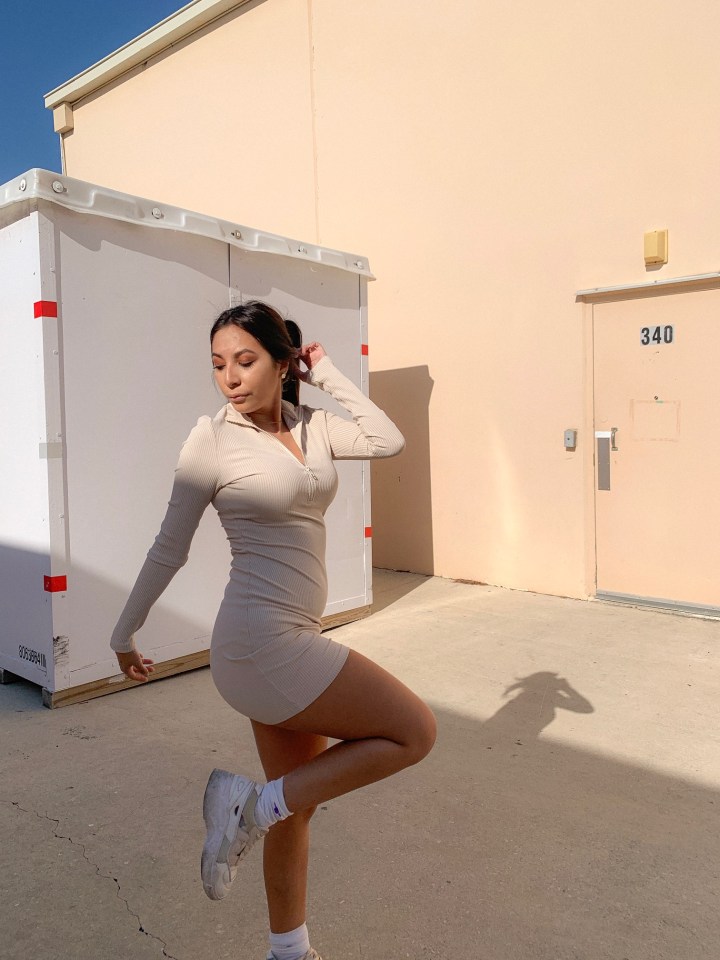 It has become clear to me that I am really loving neutrals at the moment. When I saw this dress I was a bit hesitant at first because I knew it was bodycon and I try to steer clear of dresses that hug me when the material is thin. However, I went for it because I knew it would look cute on a “skinny day”. I am so glad I bought it because the material is so soft and it is honesty super flattering. I bought a size 2 for reference.
