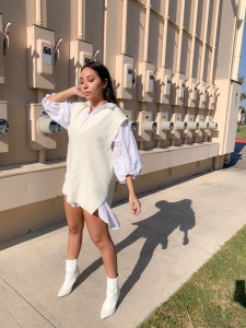 I am lovinggg this trend especially because they are so easy to layer! The one I am wearing is actually vintage because it is my grandma’s. It is a few sizes too big but it’s easy to layer over a cozy sweater.