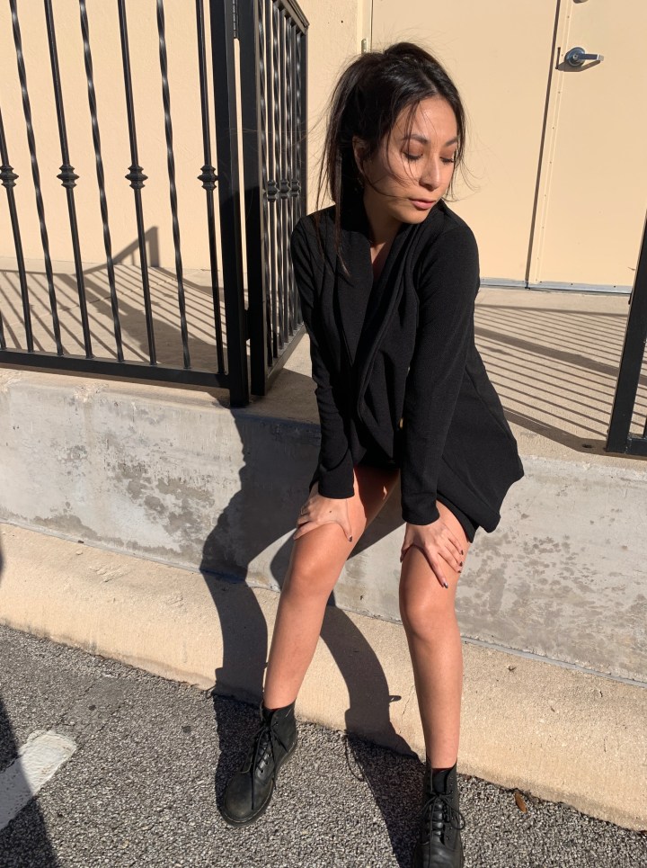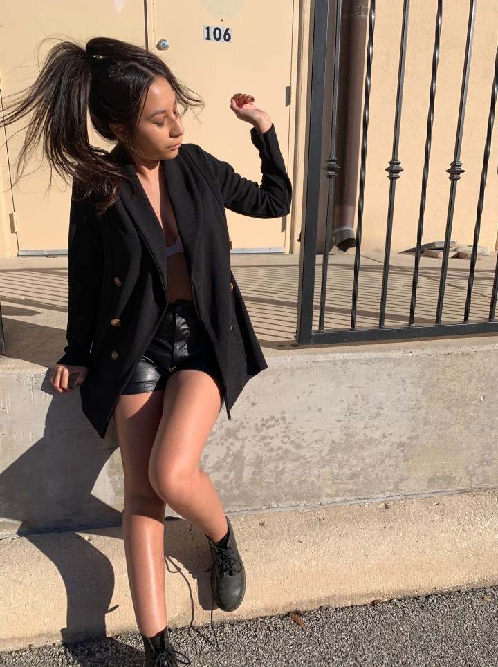 Black Blazer : I was worried for a second because I thought the material would be a bit thicker like the product shot, but when I put it on I loved how it looked and it did look like how it did on the website after all!