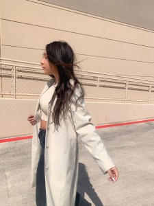 This coat was actually my grandma’s, I’m not sure where she got it but it is a size 8 which is way too big. It really fit me like a 4 and was only a little oversized