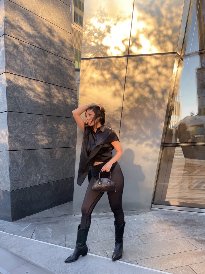 I love the combination of an all-black look with cowboy boots! So cool yet exuding class. Sending you light and love this holiday season:)